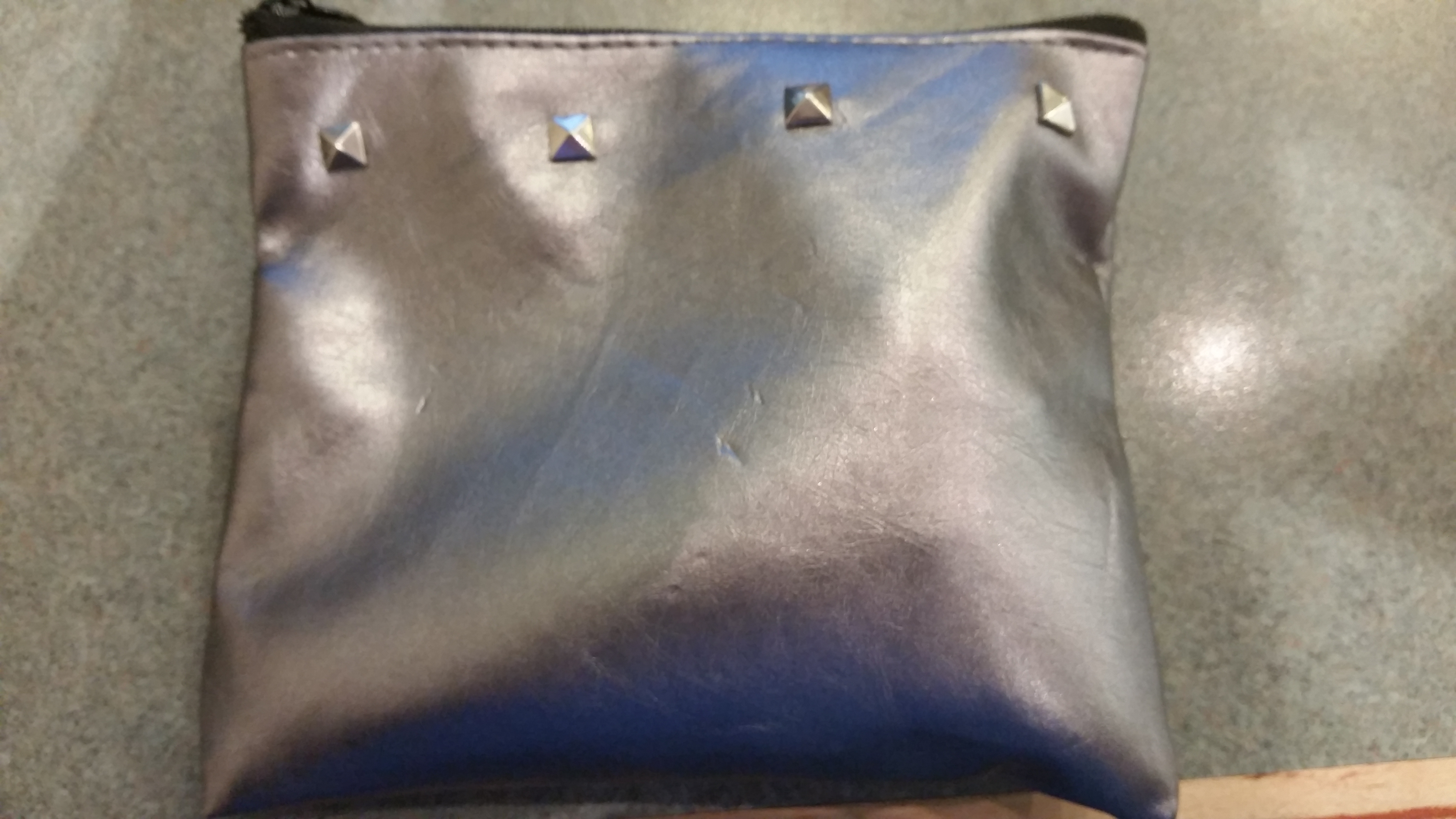 So here is a picture of this month’s glam bag – it’s studded, very street LOL. And it’s a pretty decent sized bag which I love. And I really like the steel gray color of it.